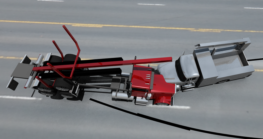 He was simply driving straight ahead on the highway when his life was cut short due to an inattentive driver. Driving a logging truck in the “bunk’s up” configuration, the deceased was hit head-on by a utility truck. The utility truck driver claimed to have been caught by surprise by a logging truck directly ahead of him making a right-hand turn, purportedly causing him to make a last-second avoidance maneuver leading to the loss of control of his truck and the resulting head-on collision. The Crash Animation Studios team was hired to help create a compelling visualization of the plaintiff expert’s theory of the case.